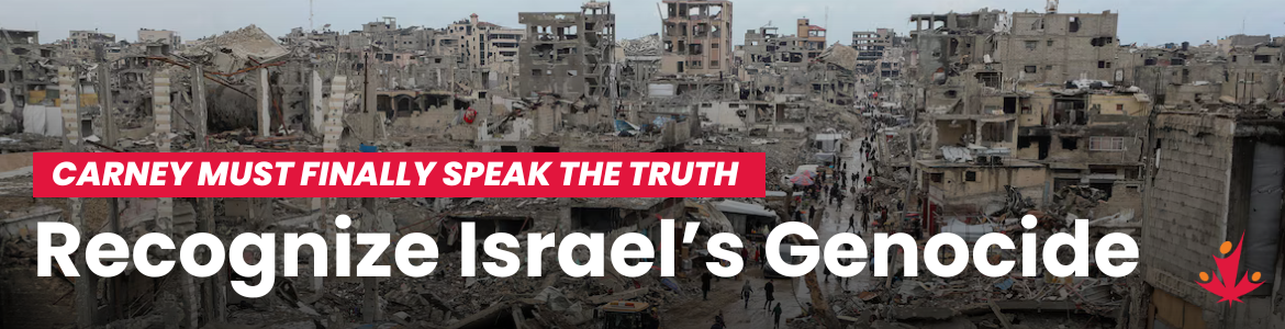 That’s why we are asking you to join our campaign to have Canada recognize Israel’s genocide in Gaza by sending an email to Prime Minister Mark Carney, Foreign Affairs Minister Anita Anand, and your MP. Canada must call it like it is and finally say “genocide.”
