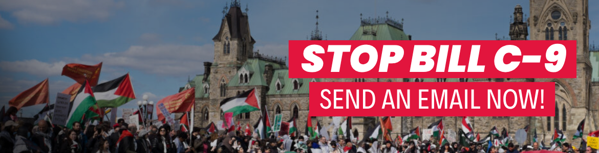It is our last chance to demand that Canadian lawmakers drop Bill C-9, and reject pro-Israel efforts to restrict Charter-protected freedoms, including criticism of Israel.